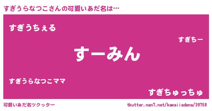 | 意味不明あだ名 | 『自称すぎうらなつこ』 |