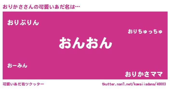 | 欧米人風あだ名 | 『マイケルおりかさ』『ダニエルおりかさ』 |