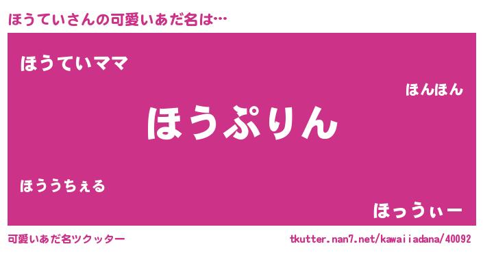 | 意味不明あだ名 | 『エリンギ科ほうてい属』『自称ほうてい』 |