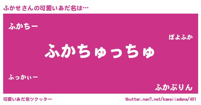 | ヘコむあだ名 | 『牛乳』『ふかっちょ』『ふかせ(笑)』 |