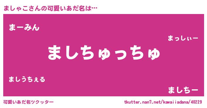 | ヒーロー風カッコイイあだ名 | 『慈愛の使者ましゃこ』『暗黒騎士マシ』 |