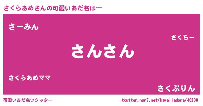 | 恥ずかしいあだ名 | 『プリティーさくらあめ』『さくっちょ』 |