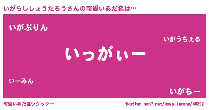 | ポケモン風あだ名 | 『イガゴンZ』『ヒイガラシショウタロウ』 |
