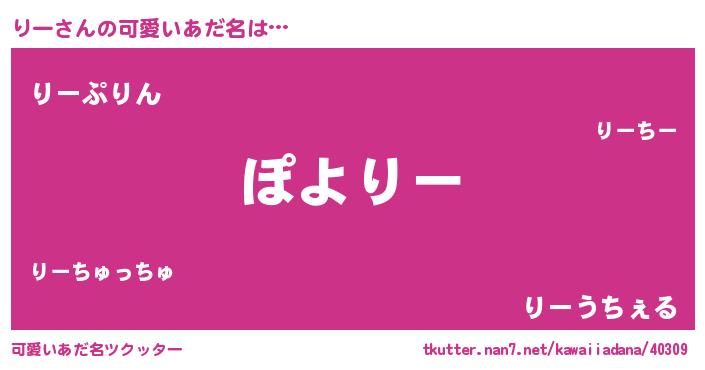 | ヘコむあだ名 | 『豆乳』『りーぷりん』『りーふぇ~』 |