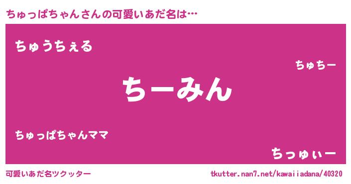 | 意味不明あだ名 | 『自称ちゅっぱちゃん』 |