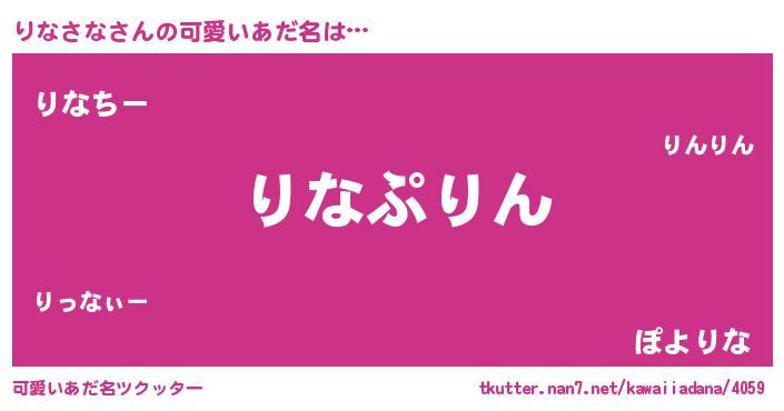 | 男性向けラノベタイトル風あだ名 | 『りなさなに滅ぼされるだけの簡単なお仕事です』 |