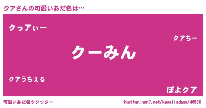 | 意味不明あだ名 | 『とにかく怪しいクア』『自称クア』 |