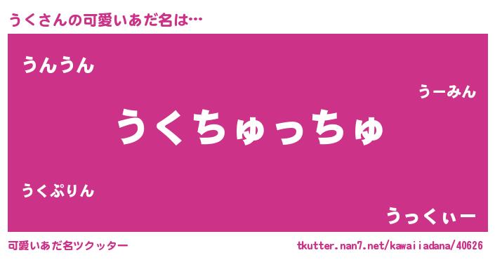 | 料理風あだ名 | 『うくのトマト煮』『うくの豆乳スープ』 |