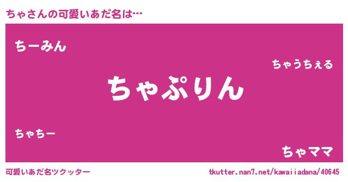 | 女子向けラノベタイトル風あだ名 | 『ちゃの玉の輿計画!』 |