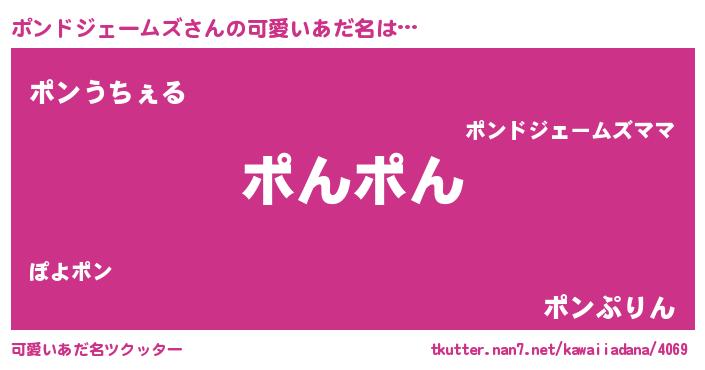 | ヘコむあだ名 | 『ポンふぇ~』『ポンドジェームズ(遠い目)』 |