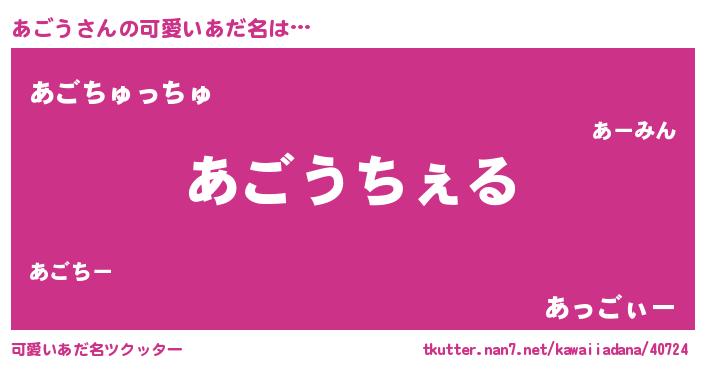 | 男性向けラノベタイトル風あだ名 | 『Re:あごうから始める異世界生活』 |