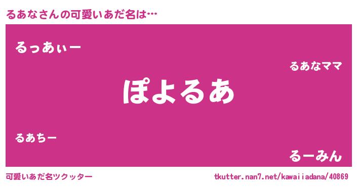 | ヘコむあだ名 | 『るあっ子』『るあな(笑)』 |