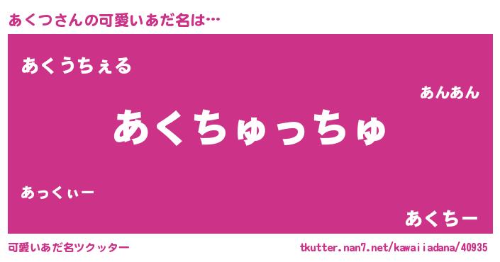 | 意味不明あだ名 | 『眠気覚ましガムあくつ味』『自称あくつ』 |