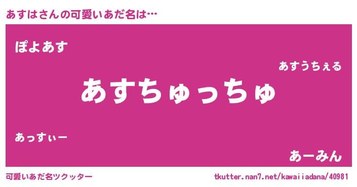 | 欧米人風あだ名 | 『ダニエルあすは』『ダレノガレあすは』 |