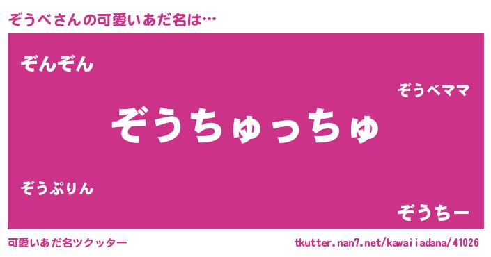 | 男性向けラノベタイトル風あだ名 | 『ぞうべに滅ぼされるだけの簡単なお仕事です』 |