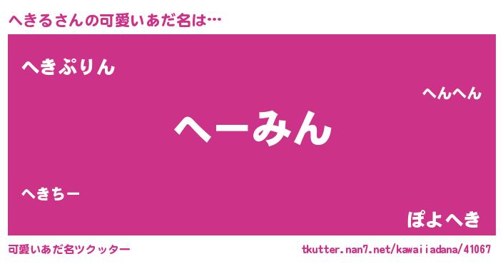 | 恥ずかしいあだ名 | 『プリティーへきる』『へきっちょ』 |