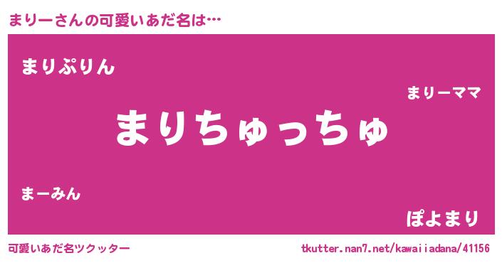 | 女子向けラノベタイトル風あだ名 | 『まりー恋絵巻』『まりーの玉の輿計画!』 |