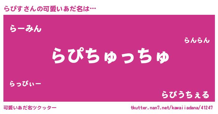 | ヘコむあだ名 | 『らぴもー』『らぴお』『つくし』 |
