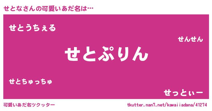 | 意味不明あだ名 | 『めかぶ科せとな属』『自称せとな』 |