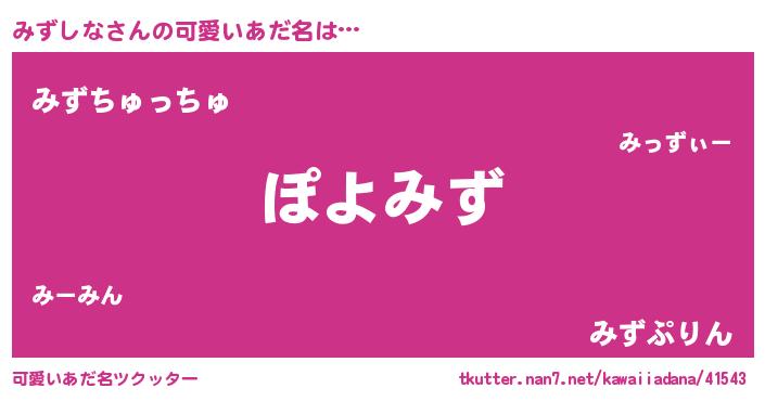 | ヘコむあだ名 | 『みずぷりん』『みずもー』『豆乳』 |