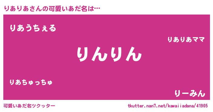 | 意味不明あだ名 | 『ペロリンりありあ』『自称りありあ』 |