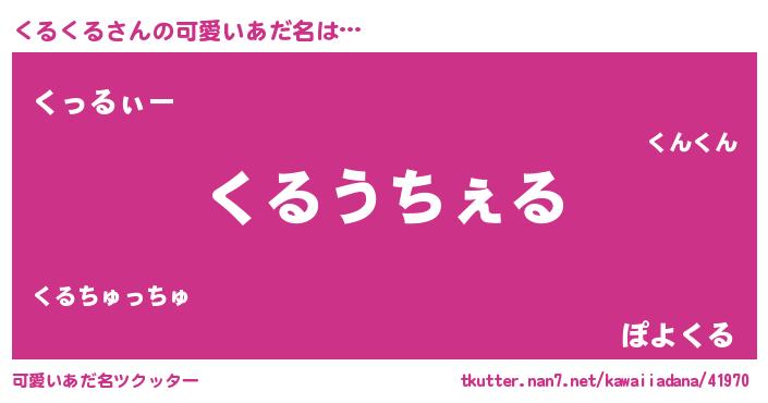 | 意味不明あだ名 | 『自称くるくる』『ペロリンくるくる』 |
