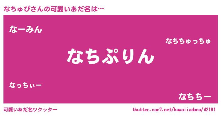 | 男性向けラノベタイトル風あだ名 | 『転生したらなちゅぴだった件』 |
