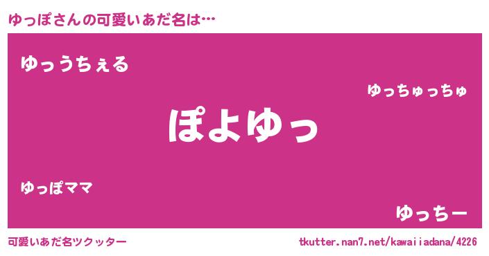 | 男性向けラノベタイトル風あだ名 | 『この素晴らしい世界にゆっぽを!』 |