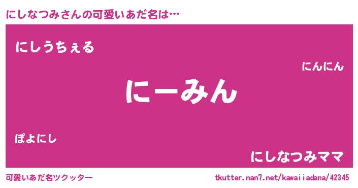 | ヘコむあだ名 | 『にしなつみ(笑)』『にしにゅー』 |
