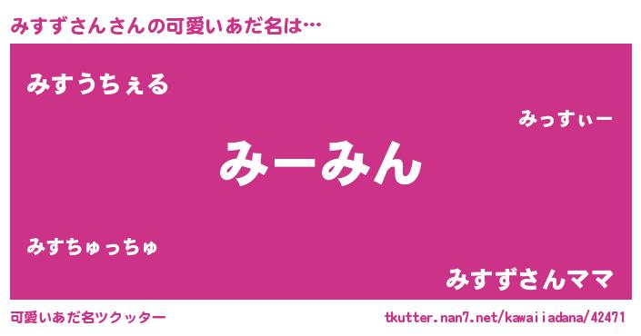 | 意味不明あだ名 | 『自称みすずさん』『永久保存みすずさん』 |