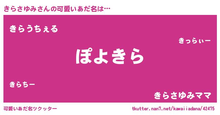 | ヘコむあだ名 | 『きらさゆみ(遠い目)』『きらっ子』 |