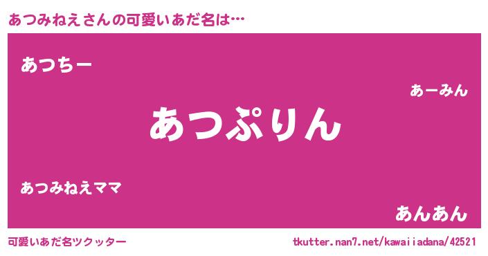 | ポケモン風あだ名 | 『アツキング』『アツミダネ』 |