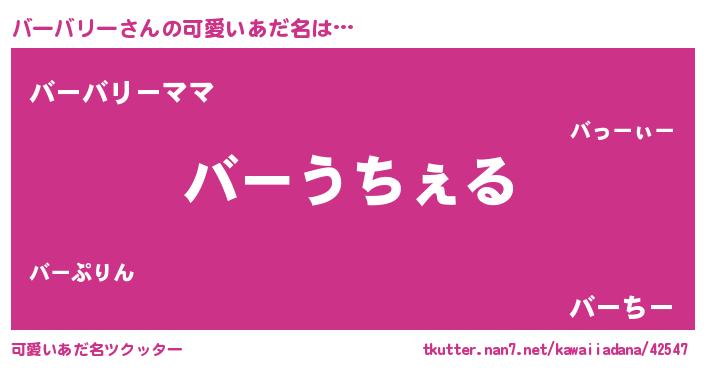 | 意味不明あだ名 | 『自称バーバリー』『永久保存バーバリー』 |