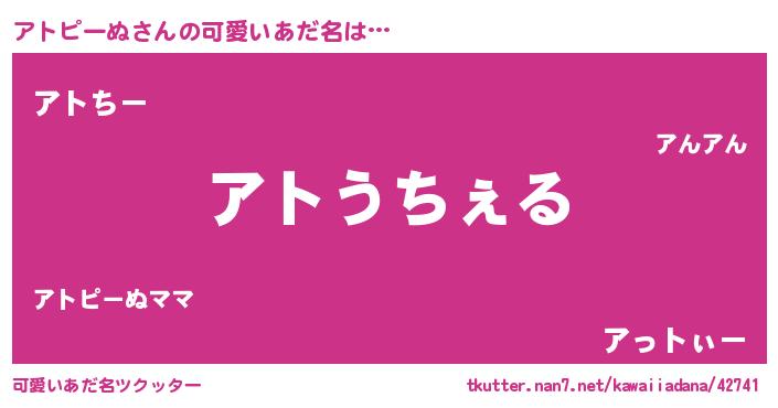 | ファンタジー風あだ名 | 『ゼアトトゥ』『エターナルアトピーヌー』 |