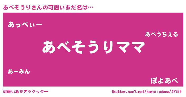 | 意味不明あだ名 | 『永久保存あべそうり』『自称あべそうり』 |
