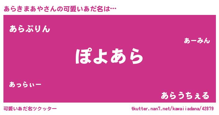 | 恥ずかしいあだ名 | 『アラキマアヤデラックス』『あらちん』 |