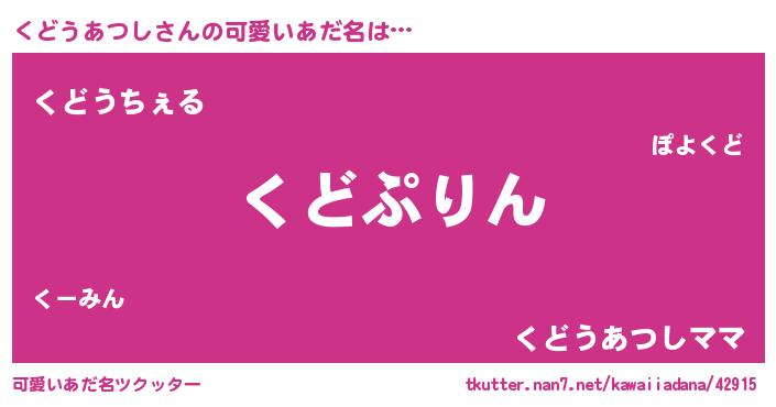 | ヘコむあだ名 | 『くどうあつし(爆)』『くどぷりん』 |