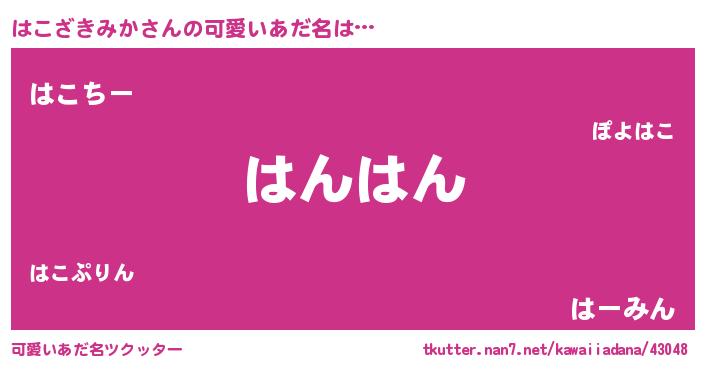 | 恥ずかしいあだ名 | 『プリティーはこざきみか』『はこっちょ』 |