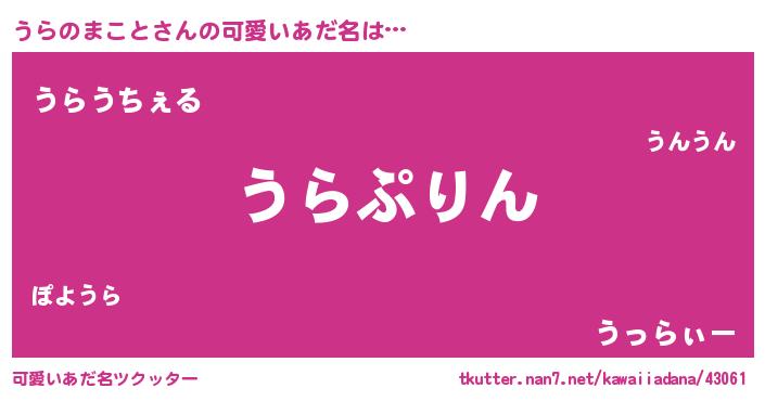 | ヘコむあだ名 | 『うらぷりん』『うらっふぃ~』 |
