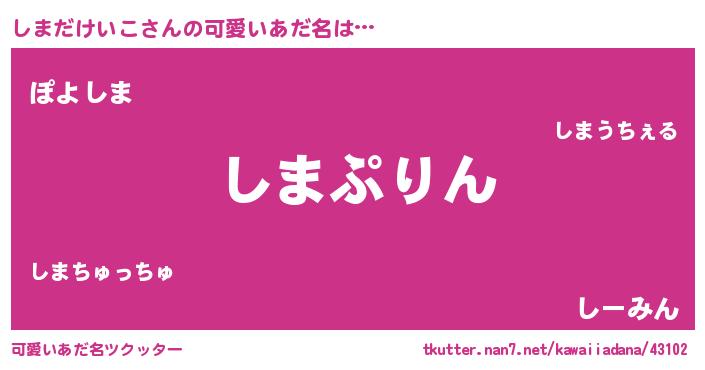| 男性向けラノベタイトル風あだ名 | 『転生したらしまだけいこだった件』 |