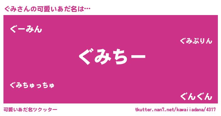 | ヘコむあだ名 | 『なまこ酢』『ぐみにー』『ぐみ(笑)』 |