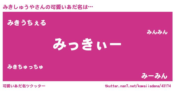 | 女子向けラノベタイトル風あだ名 | 『みきしゅうやは平凡を望む』 |