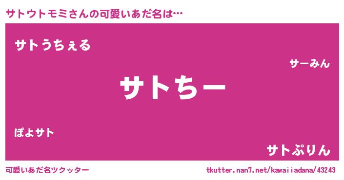 | 恥ずかしいあだ名 | 『サトっちょ』『サトウトモミデラックス』 |