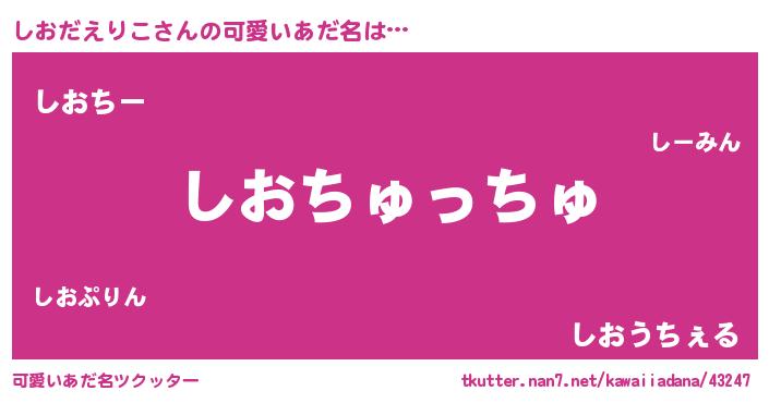 | ヘコむあだ名 | 『牛乳』『しおだえりこ(笑)』 |