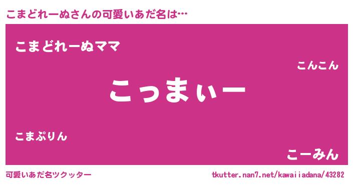 | 意味不明あだ名 | 『とにかく怪しいこまどれーぬ』 |