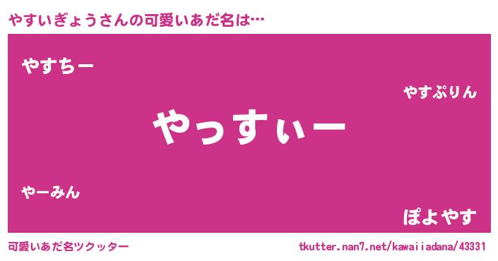 | ポケモン風あだ名 | 『ヒヤスイギョウ』『ヤスイダネ』 |