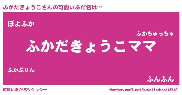 | ヘコむあだ名 | 『ふかだきょうこ(苦笑)』『ふかにー』 |