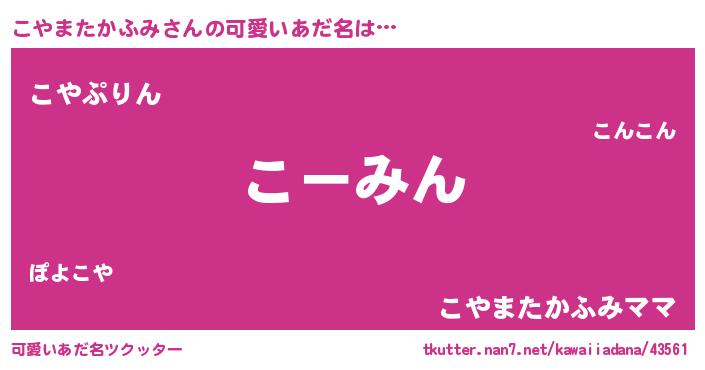 | ヘコむあだ名 | 『こやまたかふみ(遠い目)』『こやふぇ~』 |