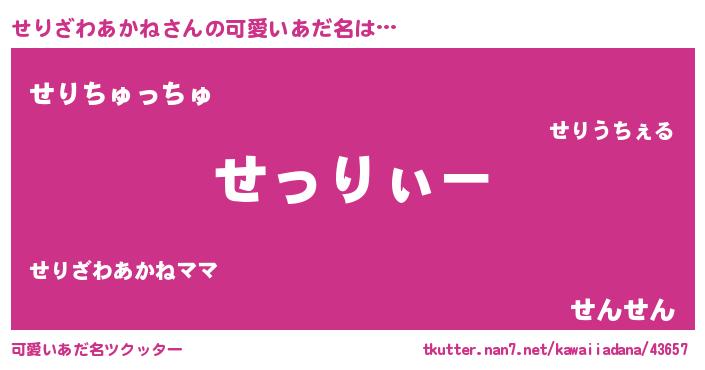| 意味不明あだ名 | 『とにかく怪しいせりざわあかね』 |