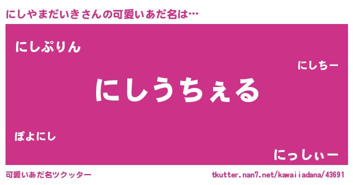 | 意味不明あだ名 | 『自称にしやまだいき』 |